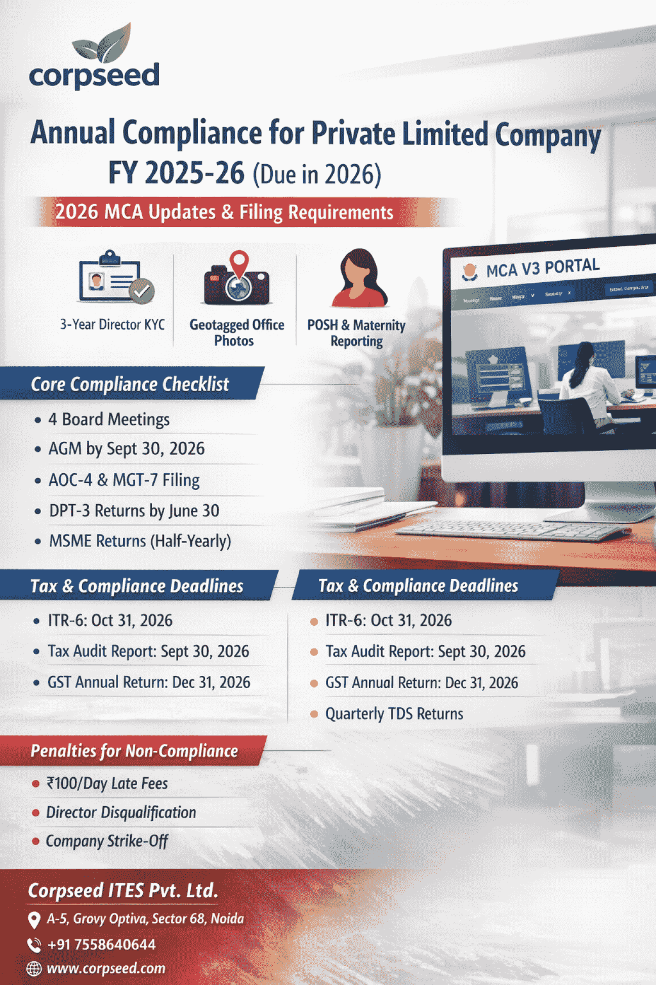 visit: https://www.corpseed.com/service/annual-compliance-for-private-limitedCompliance for a Pvt Ltd company involves meeting mandatory legal, financial, and regulatory requirements under Indian laws. This includes ROC filings, annual returns, income tax compliance, GST filings (if applicable), statutory audits, and maintaining proper company records. Regular compliance ensures legal standing, avoids penalties, and builds trust with regulators, investors, and stakeholders. visit: https://www.corpseed.com/service/annual-compliance-for-private-limited0 Comments 0 Shares 394 Views 0 Reviews -