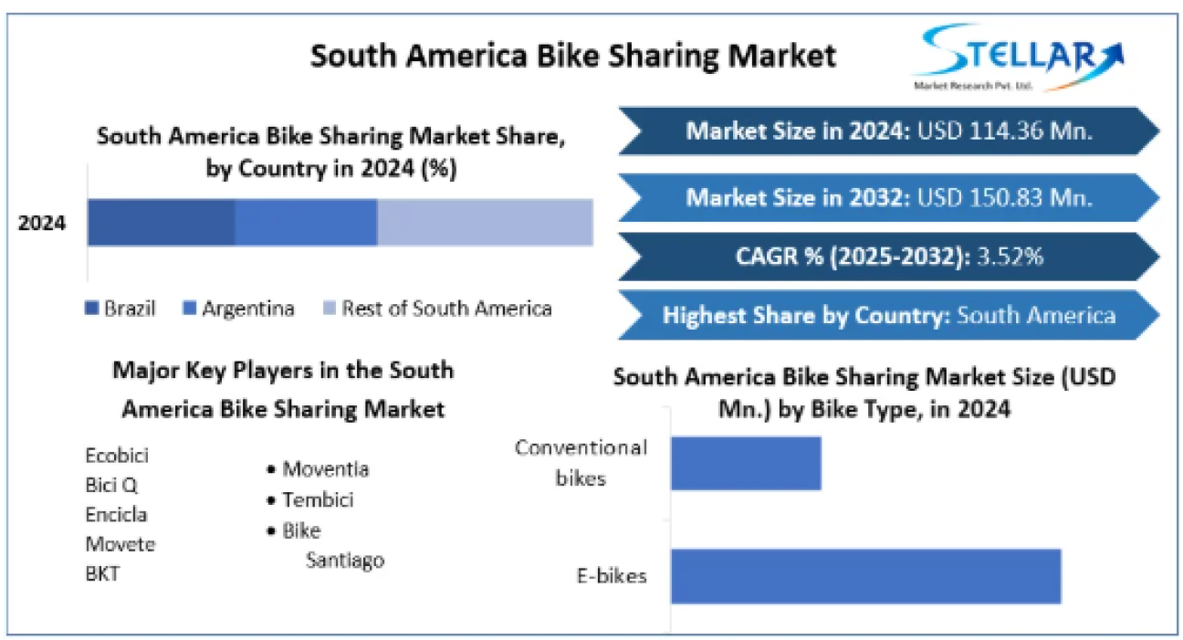 South America Bike Sharing Market to Reach USD 150.83 Million by 2032, Driven by Urban Mobility Demand and Sustainable Transport Initiatives