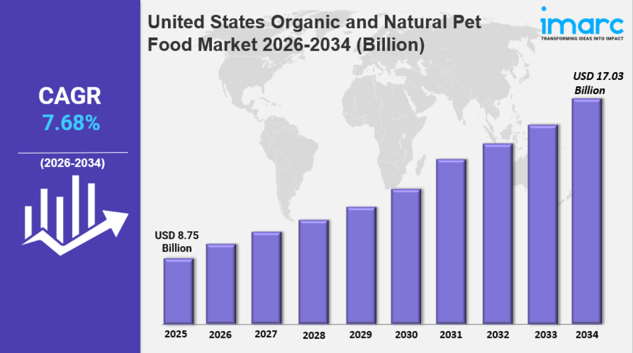 IMARC Group has recently released a new research study titled “United States Organic and Natural Pet Food Market Size, Share, Trends and Forecast by Ingredient, Pet Type, Product Type, Packaging Type, Distribution Channel, and Region, 2026-2034”, offers a detailed analysis of the market drivers, segmentation, growth opportunities, trends and competitive landscape to understand the current and future market scenarios.