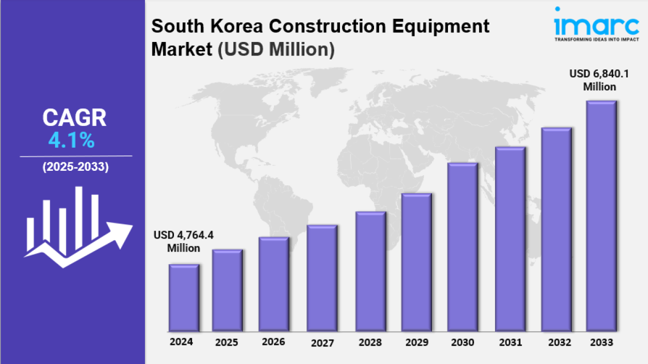 IMARC Group has recently released a new research study titled “South Korea Construction Equipment Market Report by Solution Type (Products, Services), Equipment Type (Heavy Construction Equipment, Compact Construction Equipment), Type (Loader, Cranes, Forklift, Excavator, Dozers, and Others), Application (Excavation and Mining, Lifting and Material Handling, Earth Moving, Transportation, and Others), Industry (Oil and Gas, Construction and Infrastructure, Manufacturing, Mining, and Others), and Region 2025-2033”, offers a detailed analysis of the market drivers, segmentation, growth opportunities, trends and competitive landscape to understand the current and future market scenarios.
